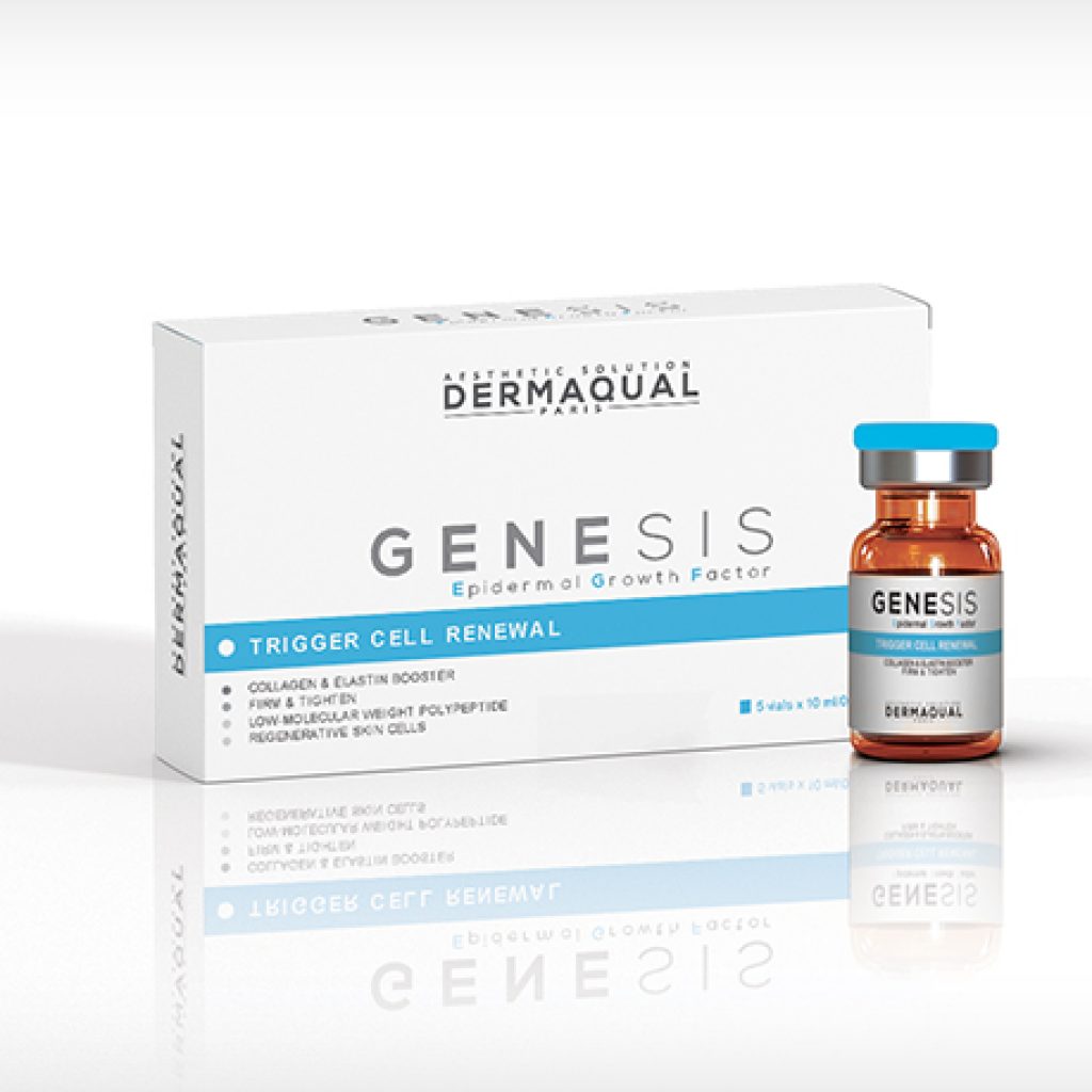 To EGF GENESIS είναι ένα κοκτέιλ που αναζωογονεί την επιδερμίδα με εντατικό αποτέλεσμα αντιγήρανσης και lifting. Η αποκλειστική του φόρμουλα βασίζεται σε σύμπλοκα υψηλής συγκέντρωσης παραγόντων ανάπτυξης (πολυπεπτίδια χαμηλού μοριακού βάρους) σε συνδυασμό με αναζωογονητικά συστατικά.